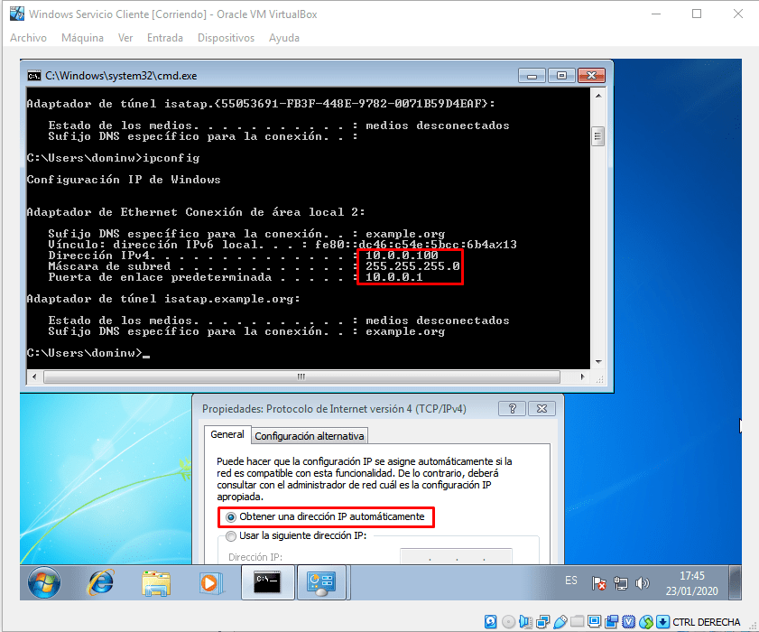 Cuando digo «se configurara automáticamente» me refiero a que nuestro servidor DHCP detecta que los clientes están configurados de manera automática y les proporcionara una interfaz de red dependiendo del adaptador en el que estén conectados.