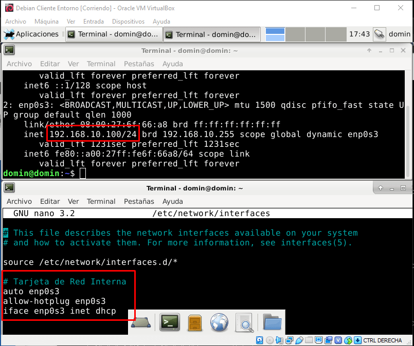 Para los clientes utilizaremos un Debían 10.2 y Windows 7, el debían estará configurado en el adaptador 2 donde recibirá la interfaz 192.168.10.x.