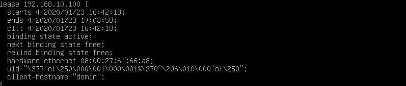 Esta seria la concesión del cliente debían con la ip 192.168.10.100. Normalmente se puede verificar mirando las mac y verificando que coinciden.