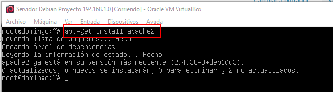 Ahora empezaremos la instalación del servicio apache2 con el siguiente comando: