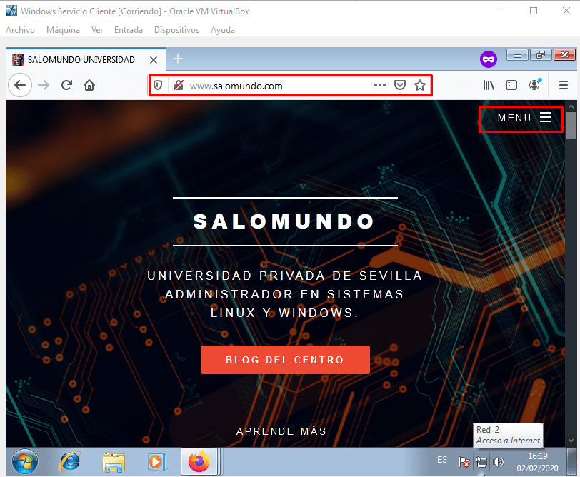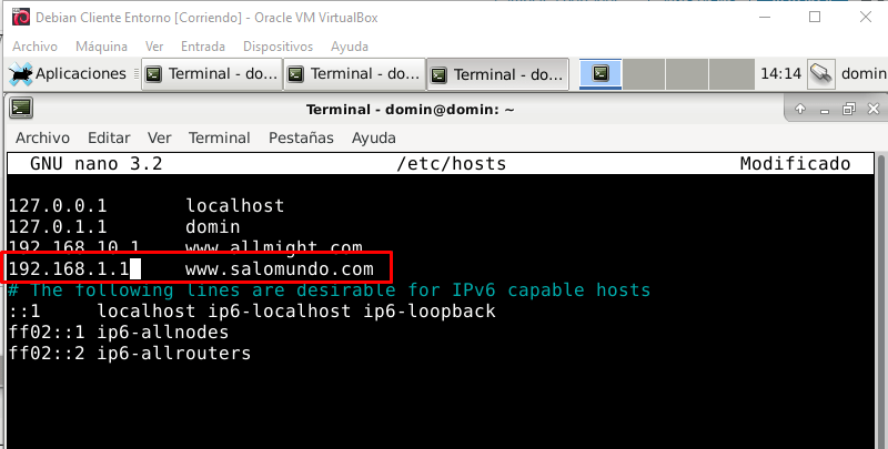 Para verificar que los cambios son correctos entraremos en los clientes con los hosts configurados para resolver el nombre de nuestra página web.