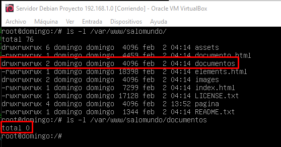 Guardamos los cambios y creamos la carpeta documentos en el mismo directorio de la página web.