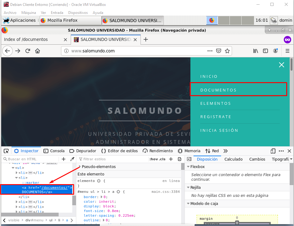 Ahora solo tendremos que crear dentro de la página web el enlace a /documentos para que automáticamente lo enlace con «/srv/doc.