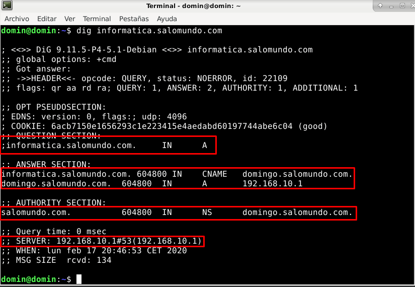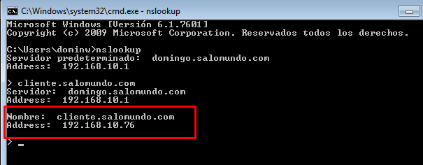 Vamos a comprobar que el servidor DNS funciona correctamente y resuelve bien las direcciones.
