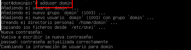 Pero antes de esto crearemos el usuario que iniciara sesión en el FTP en mi caso le llamaré «domin«.