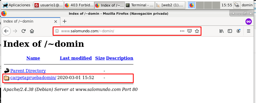 Aparte deberemos dar permiso al usuario domin para que pueda manejar su carpeta ya que esta en su directorio personal para esto le daremos el siguiente permiso: