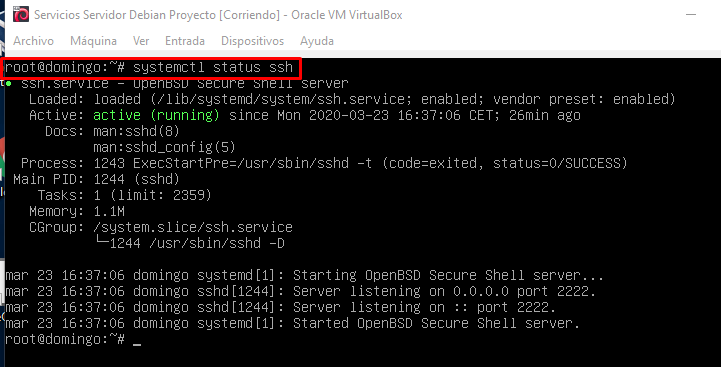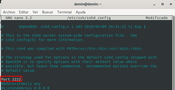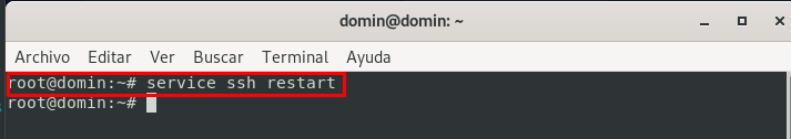 Guardamos el documento con los cambios realizamos y reiniciamos el servicio SSH.