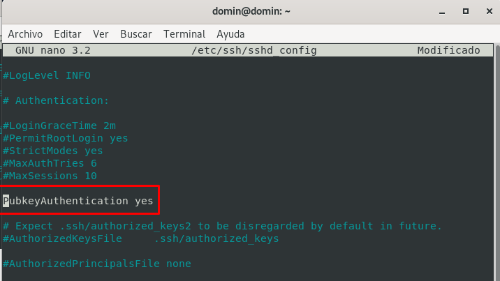 Cambiando esta opción a «Yes» activamos la autentificacion solo con claves publicas.