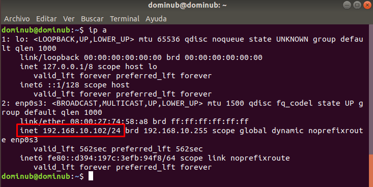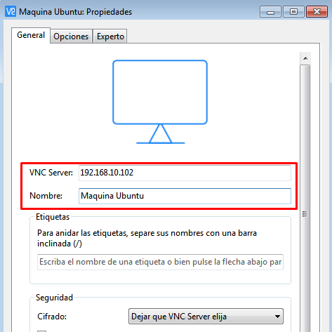 Ponemos la dirección de la maquina cliente Ubuntu y un nombre para identificarlo.