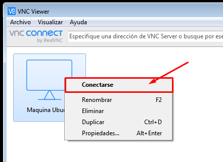 Ahora volveremos a ejecutar el RealVNC de escritorio desde el Windows para