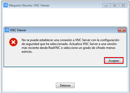 RealVNC, que no puede ser ya que lo acabamos de descargar o un error de cifrado muy