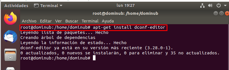 Después de instalar en el cliente ubuntu entramos dentro de la aplicación dconf.