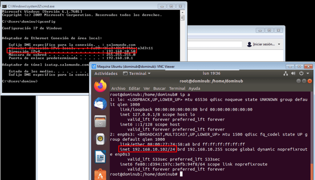 Como podemos ver estamos conectados desde el cliente windows al cliente Ubuntu por escritorio remoto sin problemas.